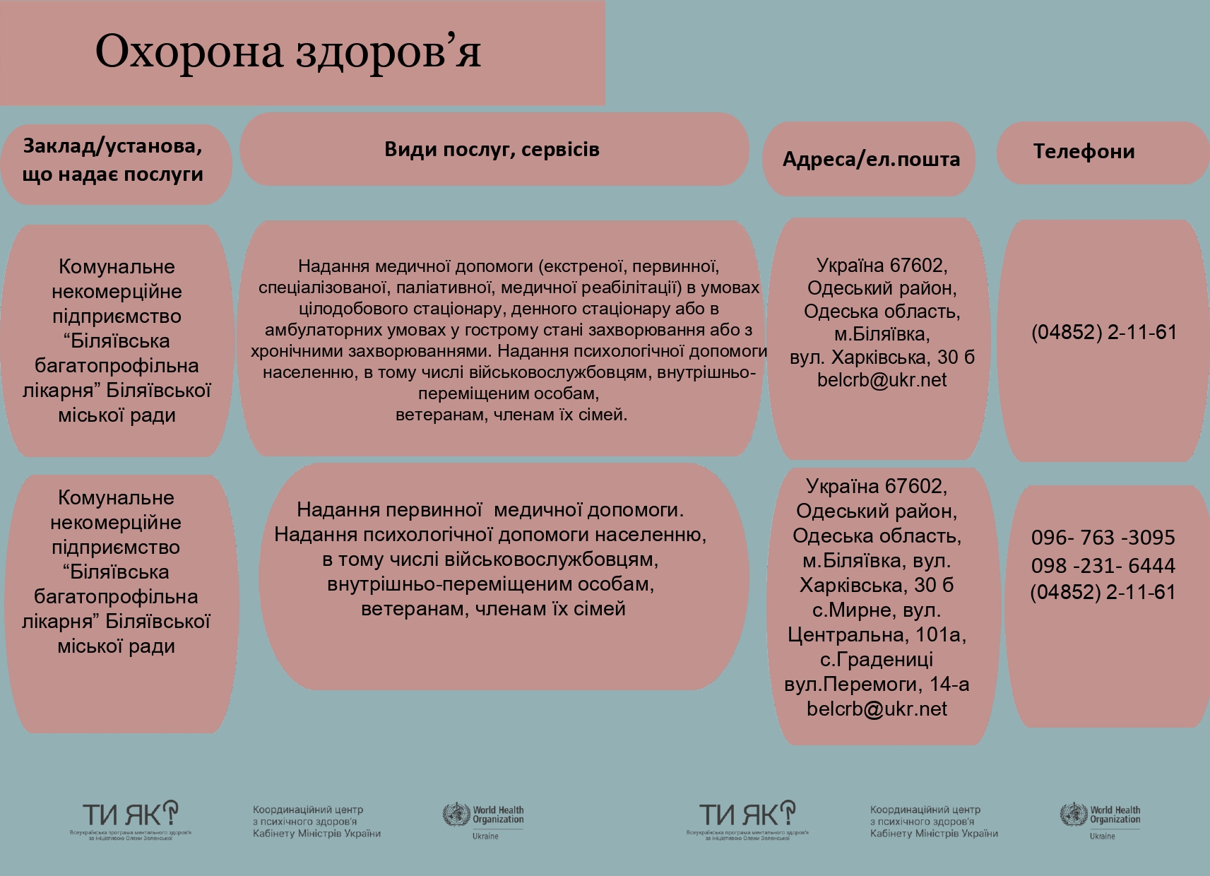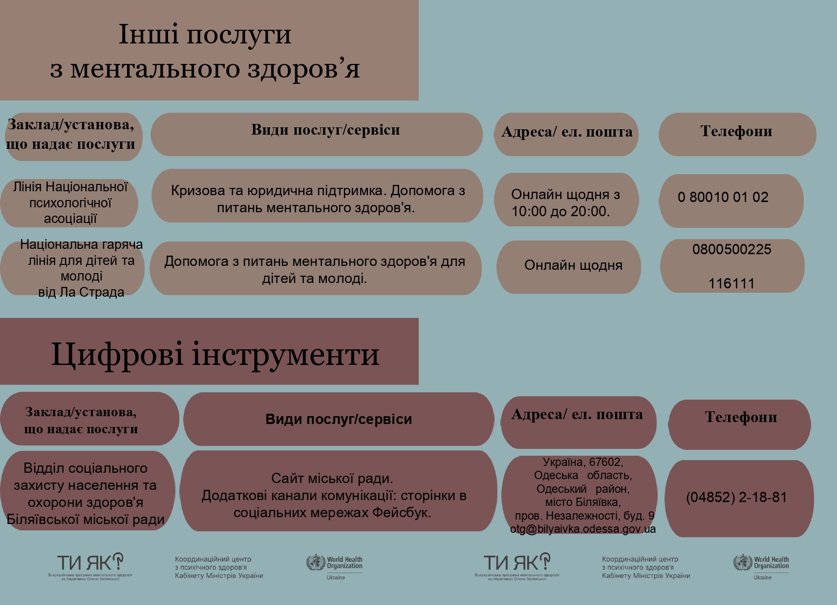 Маршрути послуг з ментального здоров’я в Біляївській міській територіальній громаді