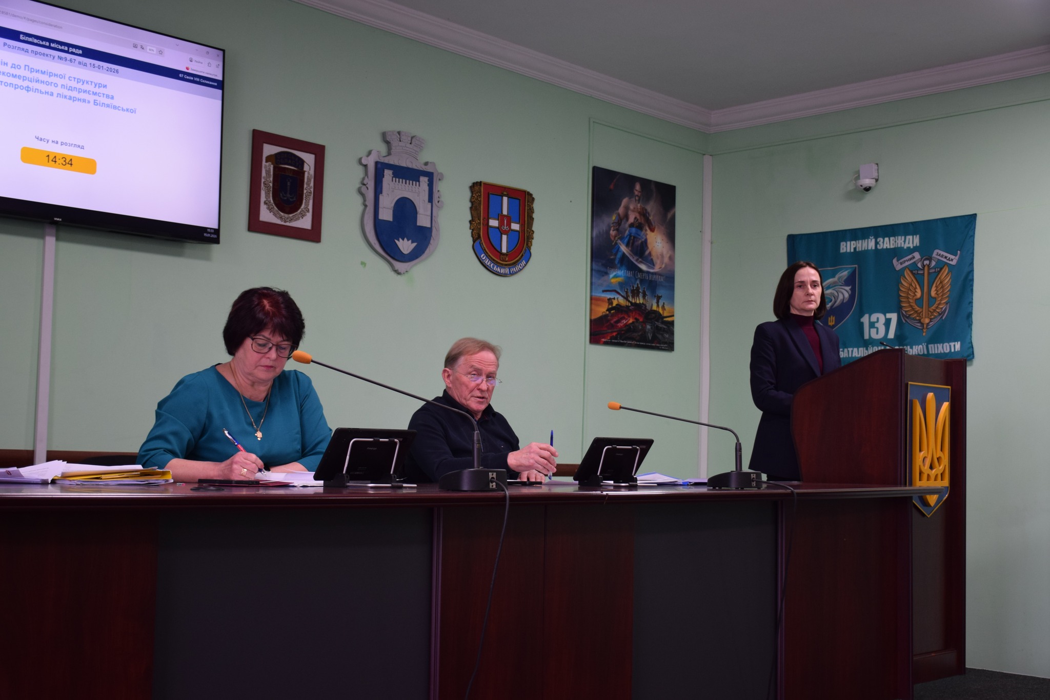 Тетяну Турбіну, яка склала повноваження за власним бажанням, замінила Ольга Тьосса. Ольга Анатоліївна склала присягу та прийняла вітання від очільника громади та депутатського корпусу, а також побажання плідної праці на благо Біляївської громади заради Перемоги та долучилась до роботи пленарного засідання.