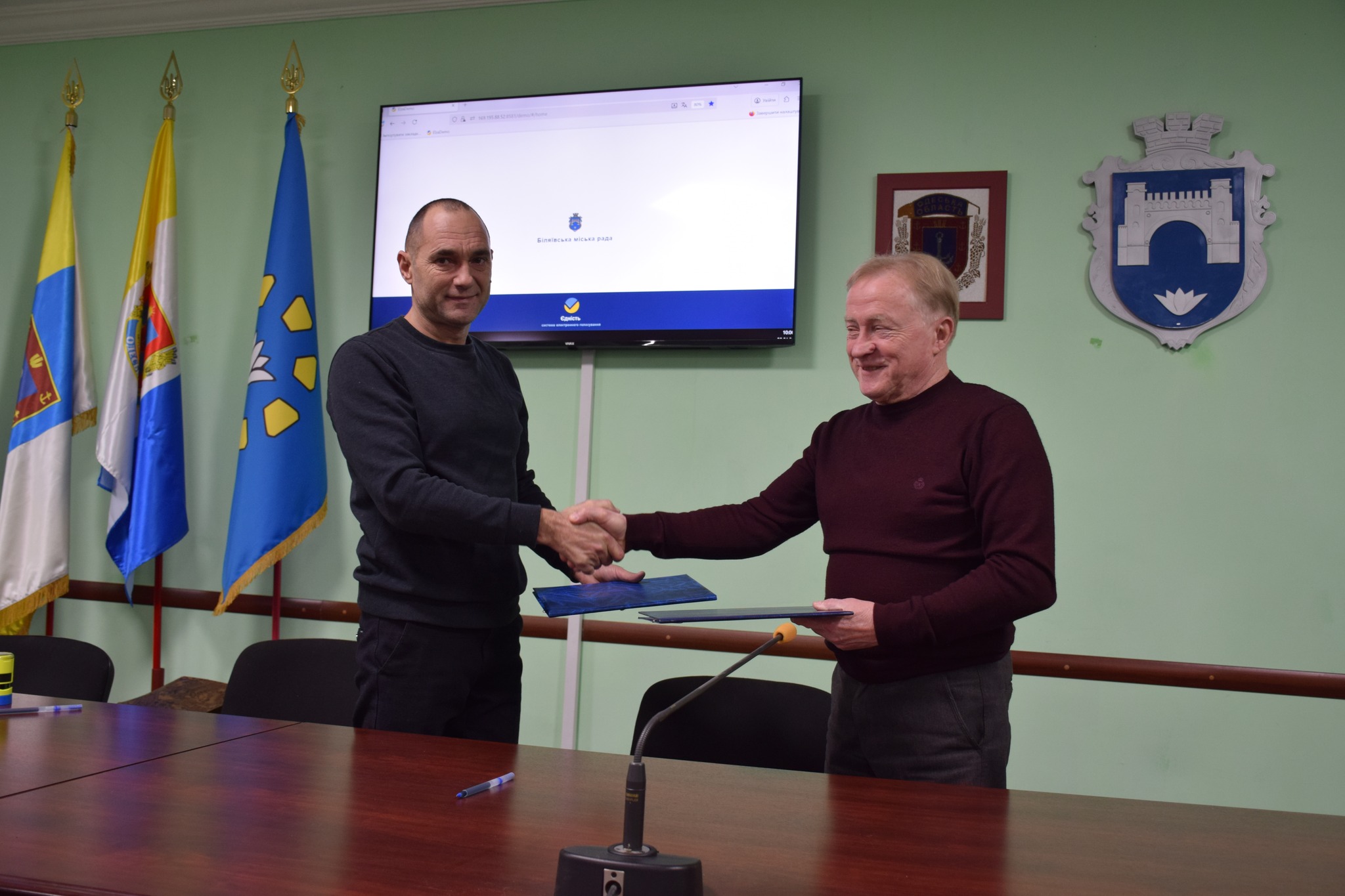Розпочали засідання з підписання Меморандуму про співпрацю між Громадською організацією «ТРК Білсателіт» та Біляївською міською радою з метою об’єднання зусиль для спільної реалізації суспільно важливих проєктів, зокрема туристично-екологічного проєкту «ДністерLIFE», спрямованого на розвиток екотуризму, екопросвіти, патріотичного виховання молоді та збереження природної спадщини Нижнього Дністра.